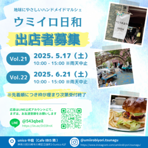 「地球に優しいおしゃれを♪」をテーマに開催している「ウミイロ日和」2025年5月・6月分の出店者様を募集します! 開催場所は、川崎区日進町にあるunicoA1中庭(Cafe IBIS横)です。 話題のおしゃれなカフェの中 […]