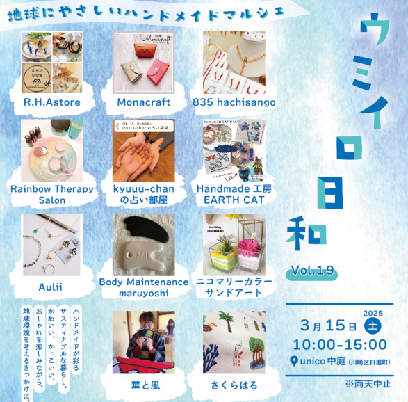 地球に優しいハンドメイドマルシェ「ウミイロ日和_vol.19」を2025年3月15日(土)に開催します。