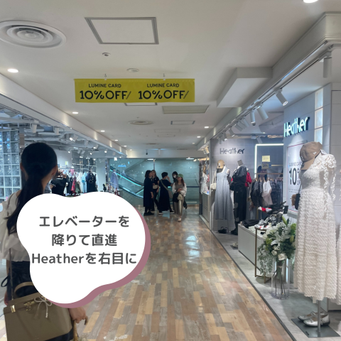 エレベーターを降りたらショップ「Heather」を右目に見ながら直進してください。