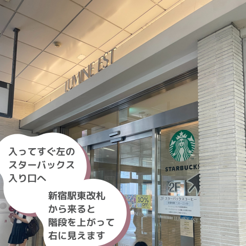 迷った時は、とにかく「スターバックスコーヒー ルミネエスト新宿店」を目指してきてね!